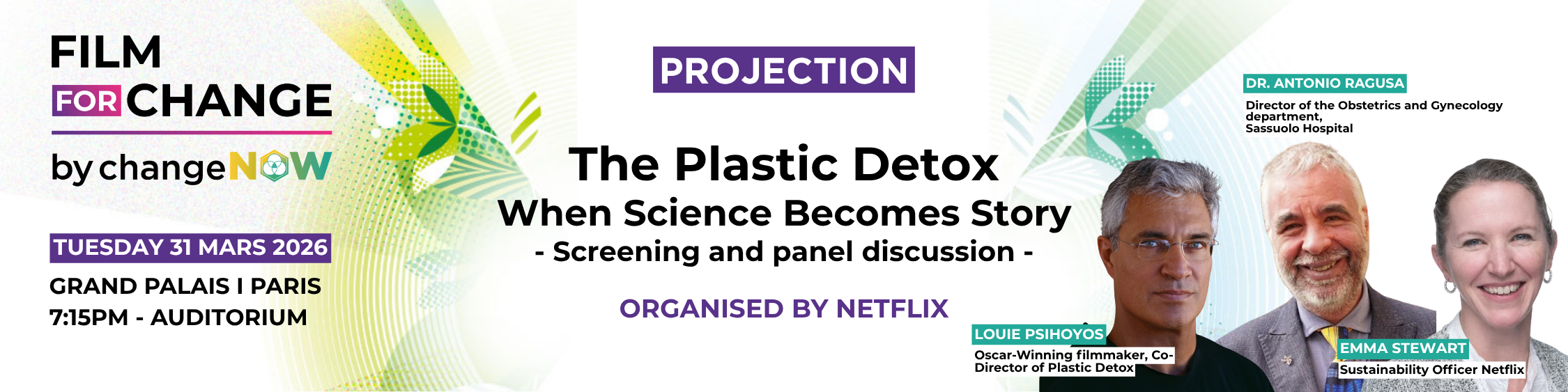 The screening will be followed by a conversation with Oscar-winning filmmaker and co-director Louie Psihoyos, Netflix’s Sustainability Officer Emma Stewart and Dr. Antonio Ragusa, Director of the Obstetrics and Gynecology department, Sassuolo Hospital.